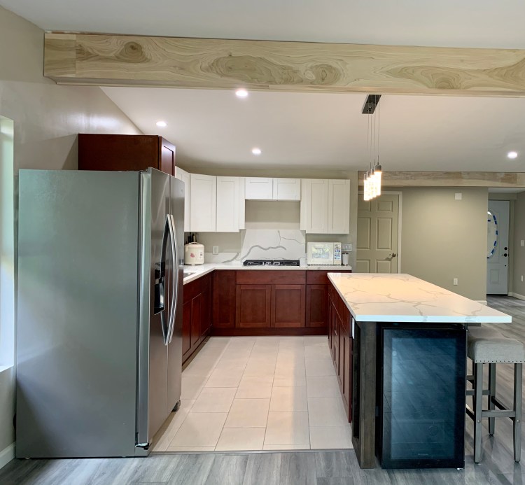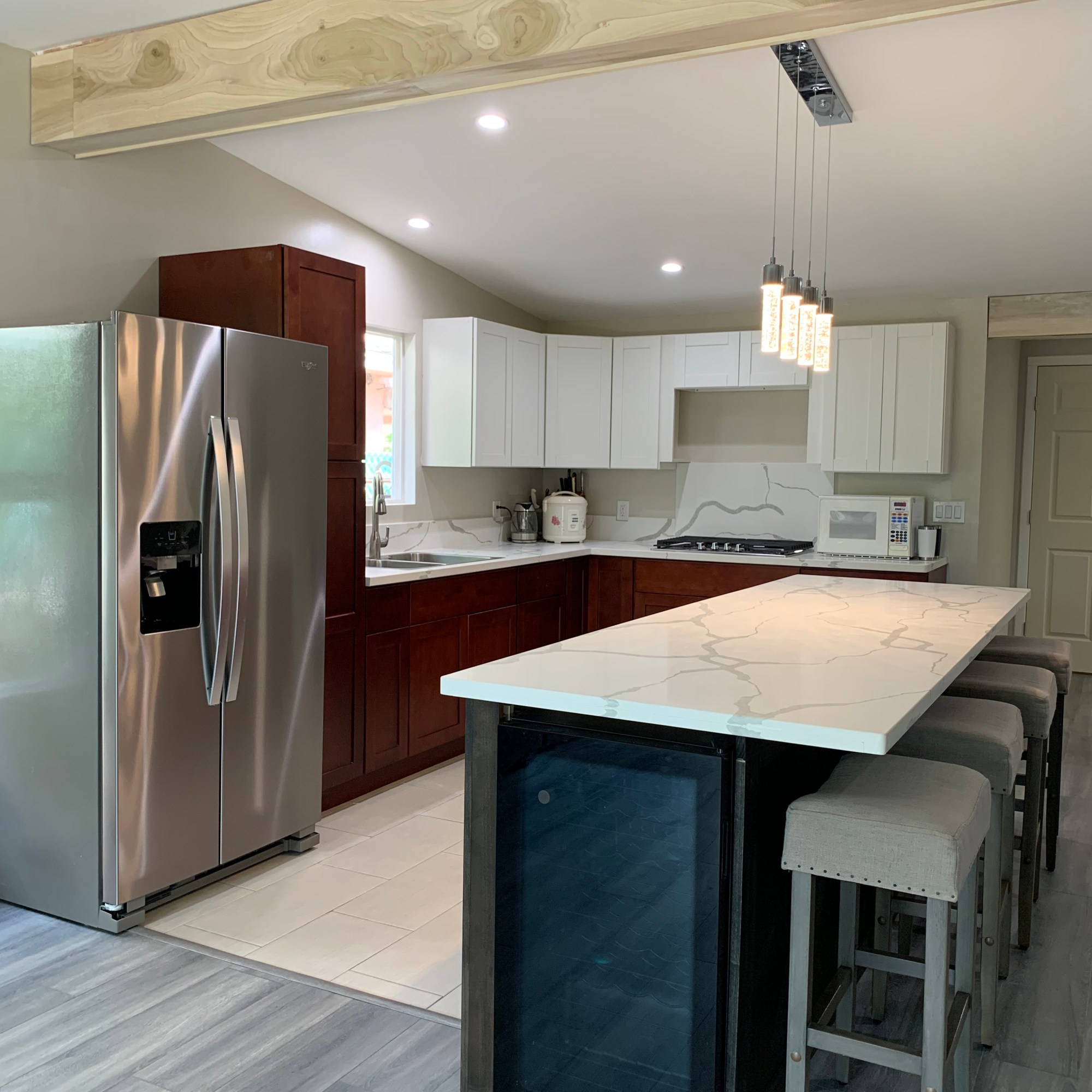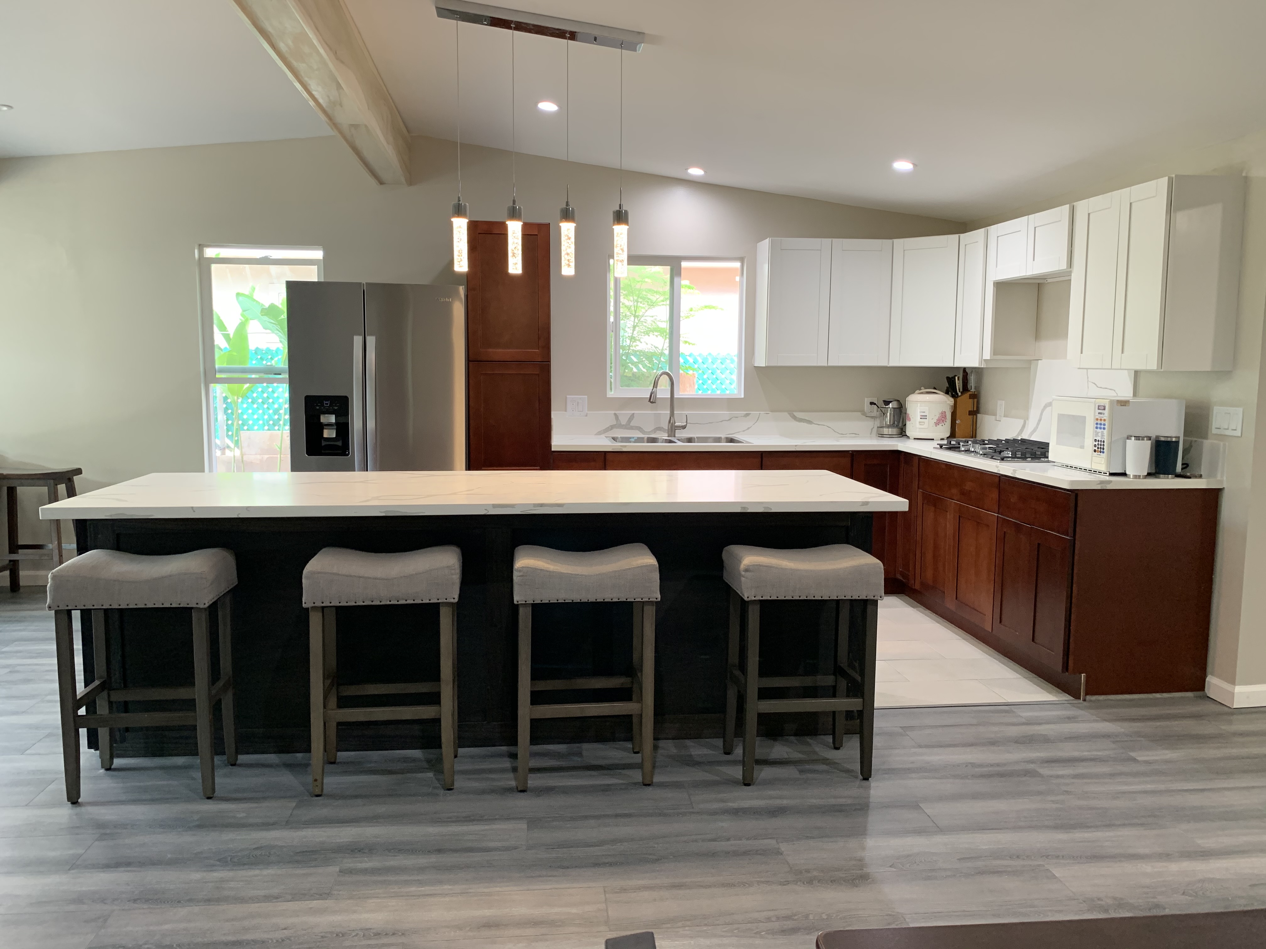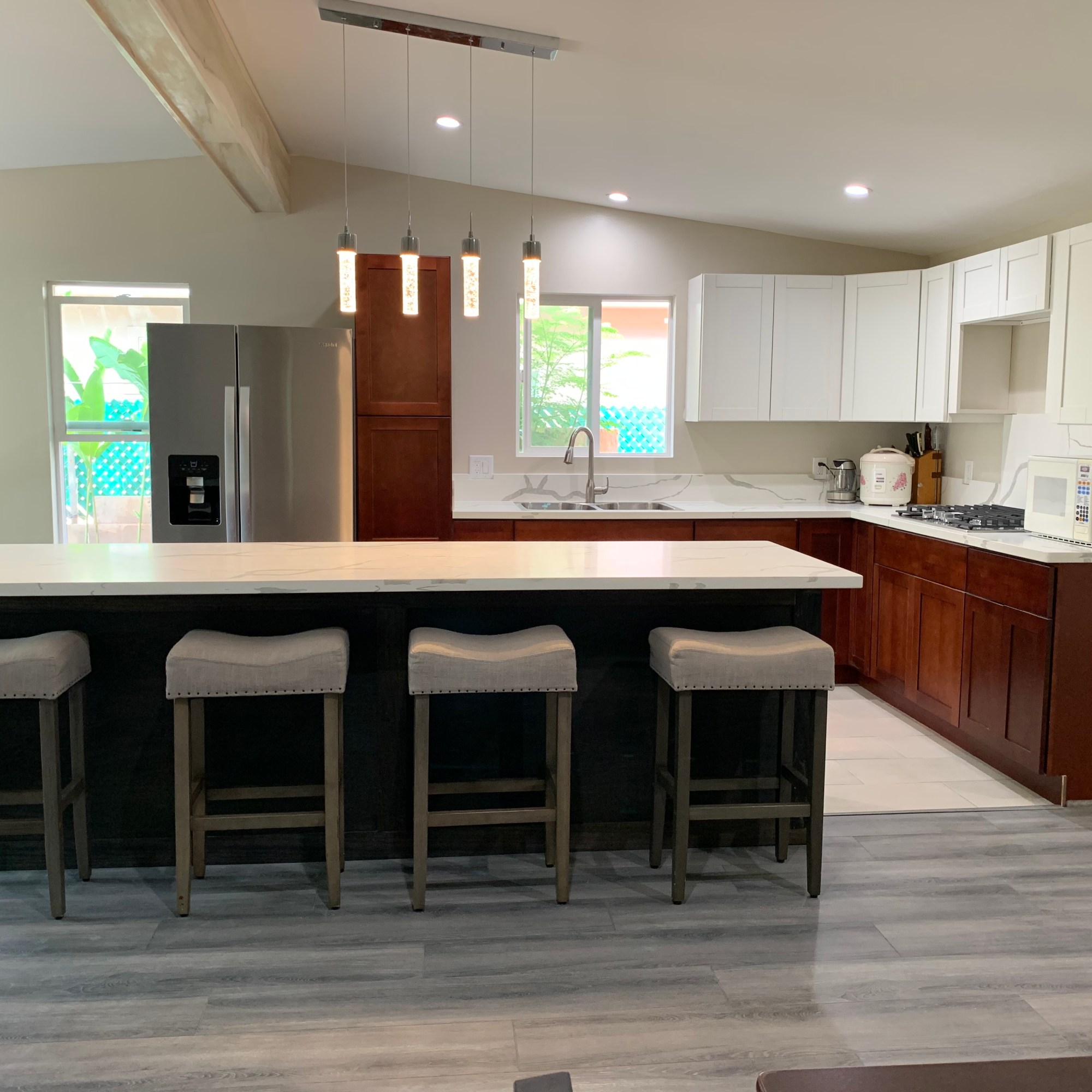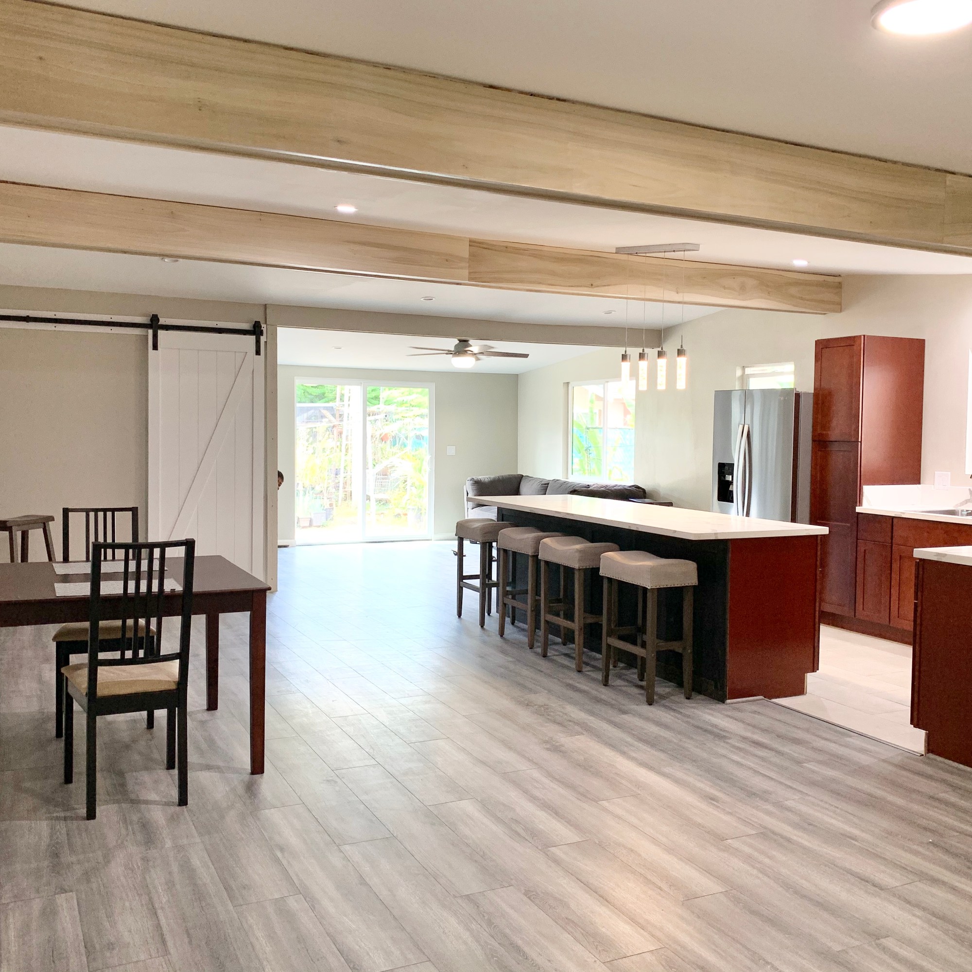 Extensive remodeling in the living room, kitchen, garage, along with the addition of a fully separate upstairs, have turned this charming Waipahu property into a completely new home.